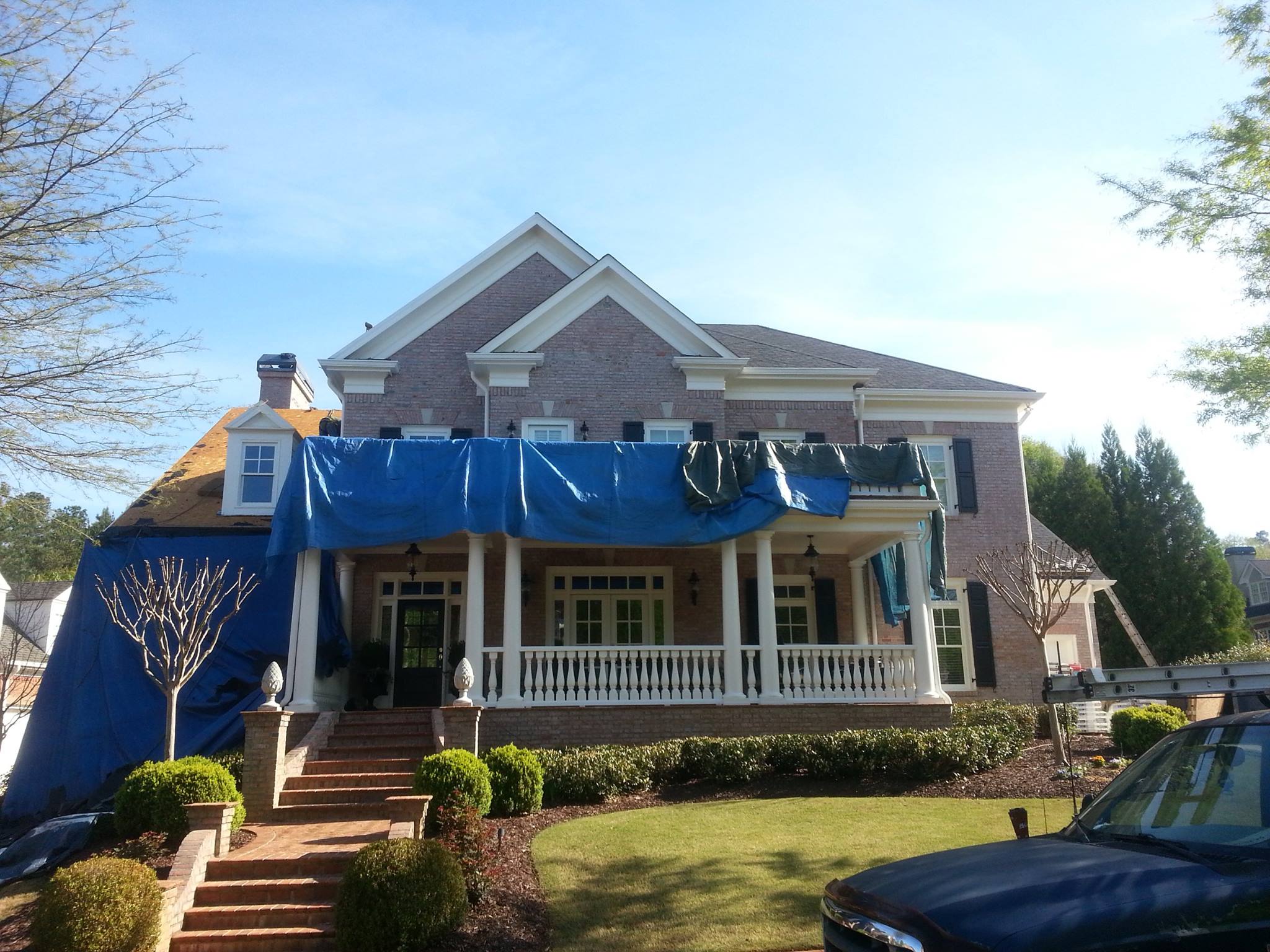 “This was a technically demanding job: lots of architectural details on this home to protect during the removal and to make watertight for life after we left. Safety planning was important on this job, too. I think we accomplished what we set out to here. The Timberline charcoal colored shingles the customer chose looked really good on this home, too.”
